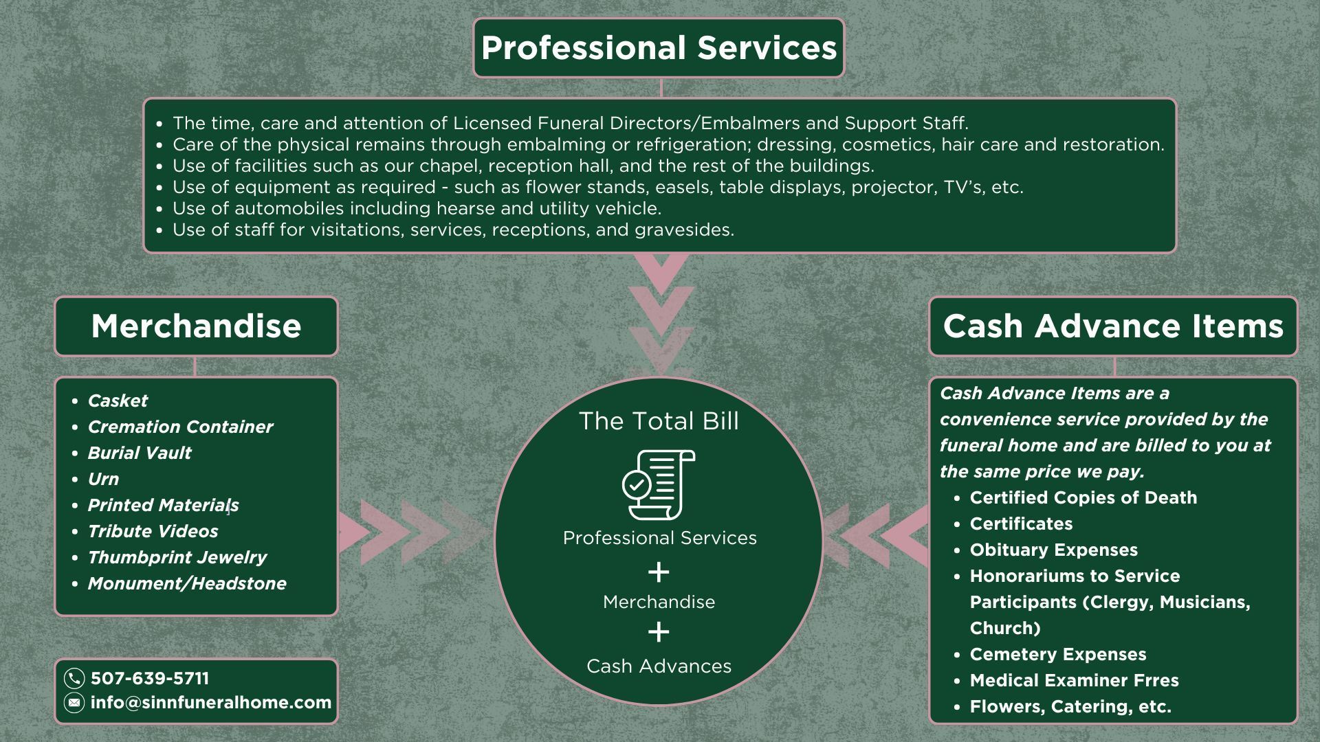 Professional Services + Merchandise + Cash Advances = Total Price of Funeral